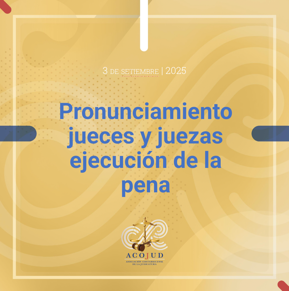 La Asociación Costarricense de la Judicatura (ACOJUD) manifiesta nuevamente su profunda preocupación y repudio ante los ataques reiterados que han recibido jueces y juezas de ejecución de la pena, por parte del Poder Ejecutivo. Estas agresiones mediante manifestaciones públicas en conferencias de prensa, constituyen un claro irrespeto a la independencia judicial y a la división de poderes que consagra nuestra Constitución Política.
